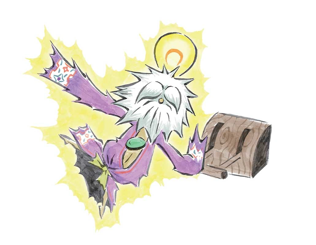 Shortly after King Fury's defeat he once again meets Kurow and Chibiterasu who had heard he had a means of following the demon Akuro into the past. It was revealed he found a blueprint in the ruins, and following it, put together a machine that would allow the user to travel through time, though he admits he built it simply to do so without realizing what it could do. Luckily, the contraption was successful in sending the heroes into the past. Shortly afterwards, he built a Moon Tribe spacecraft for Issun, and with this, he and Chibiterasu returned to the Celestial Plain.