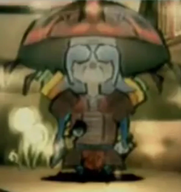 Being a Poncle, Ishaku is the size of an insect. He is clad in what appears to be brown samurai armor, with two large scrolls on his back and large brown helmet (seemingly made from the shell of a kabutomushi beetle), like those worn by all male Poncle. He stands about as tall as an insect and glows a bioluminescent yellow. He also has a sword called Denjinmaru, which appears to double as a brush. Ishaku's shoulder length hair and large, drooping eyebrows show his age since its colour has long since faded. He has a single wrinkle either side of his mouth that goes up to his tiny, red nose.
