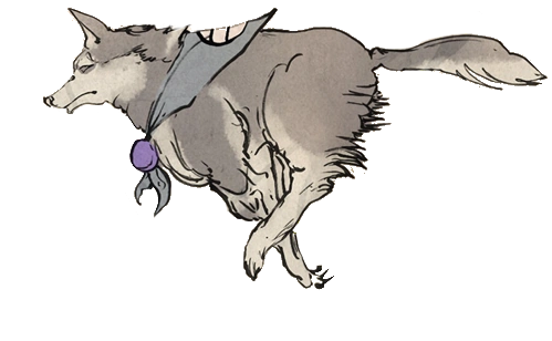 Take, also known as Gi was one of the three Canine Warriors that refused to return to Princess Fuse, due to his purpose of protecting the Sparrow Clan from forces of darkness. Take/Gi is a Sakhalin Husky. Take appears as a Sakhalin Husky. He looks like a grey wolf with white markings, pointed ears and a purplish-grey bandana with the Orb of Righteousness on it.